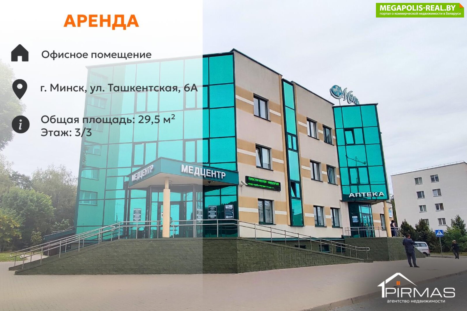 ► 1–2 этажи — медицинский центр «Мелисса», на 1-м этаже аптека (узнаваемая локация, стабильный поток посетителей)
