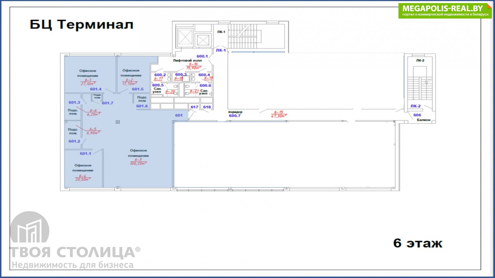 «ТВОЯ СТОЛИЦА · НЕДВИЖИМОСТЬ ДЛЯ БИЗНЕСА» - официальный представитель собственника.Аренда офиса в Бизнес-центре класса В+ "Терминал"Здание соответствует высшему классу, гарантируя комфорт и статус вашей компании.В самом здании расположены кафе, банкомат, страховая и другие компании. Современные помещения: в аренду предлагаются офисы с современной чистовой отделкой.Комфортные условия работы: система вентиляции с очисткой воздуха, система кондиционирования.Безопасность: 24/7 доступ офис, круглосуточное видеонаблюдение и администрирование.Удобство для сотрудников и клиентов: пересечение крупных магистралей – ул. В. Хоружей и М. Богдановича. Более 20 маршрутов наземного транспорта, метро: "Пл. Якуба Коласа". Предоставим по вашему запросу планы свободных помещений и площадей, которые освободятся в ближайшие 1-3 месяца. Организуем осмотр объекта.Согласуем условия договора аренды, период арендных каникул.Все преференции и ставки - от собственника.Арендатор не оплачивает услуги агентства.