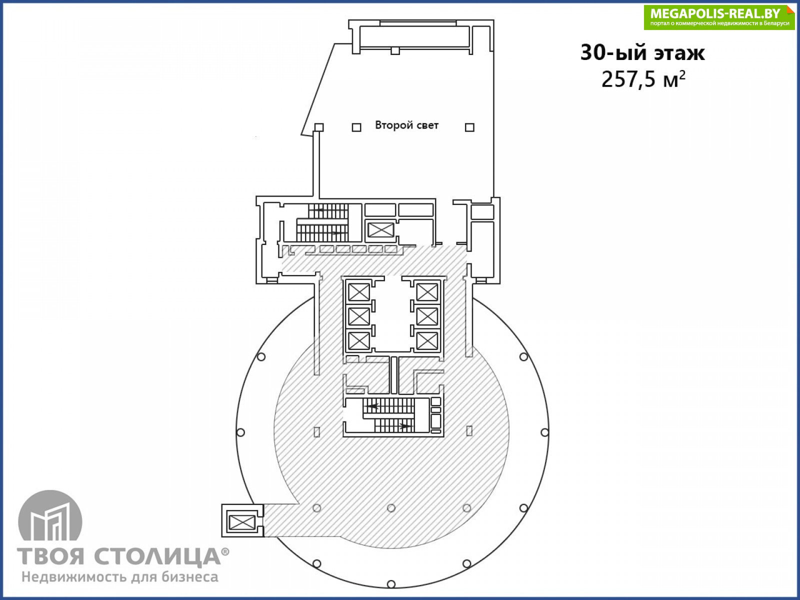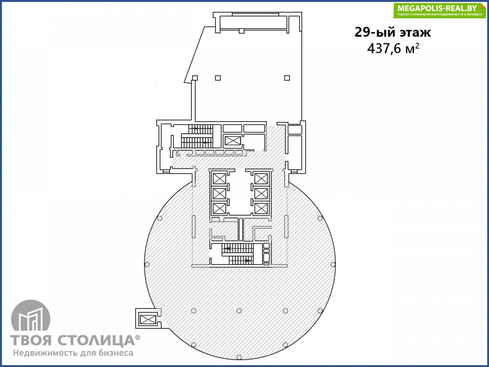 БЦ Royal Plaza, небоскреб высотой 130 м расположен в деловом, географическом и историческом районе Минска, одно из самых узнаваемых зданий Минска!В аренду предлагается офис на 29-30-м этаже общей площадью 695,1 кв.м (437.6 кв.м + 257.5 кв.м). Планировочное решение на основе open space, сформированные места для лаунж зоны и зоны кухни, высота потолков от 3м, панорамное остекление, группы санузлов на каждом этаже. Внутренняя атмосфера офиса - это ощущение парения в любой точке офисного пространства. Уникальный обзор города - с высоты птичьего полета виды на р. Свислочь с Троцким предместьем, Верхний город и Кафедральный собор Святого Духа.Здание бизнес-центра обслуживает 6 бесшумных лифтов "OTIS", есть панорамный лифт, который останавливается на 29 и 30 этажах и на 28-м этаже, где разместился ресторан "The View" с европейской и авторской кухней. На 3-м этаже функционирует в круглосуточном режиме тренажерный зал "GYM 24"Парковка у здания вместительная, свободная без закрепления машиномест, рядом крытый многоуровневый паркинг ТЦ "Galleria" на платной основе.Арендатор не оплачивает услуги агентства.
