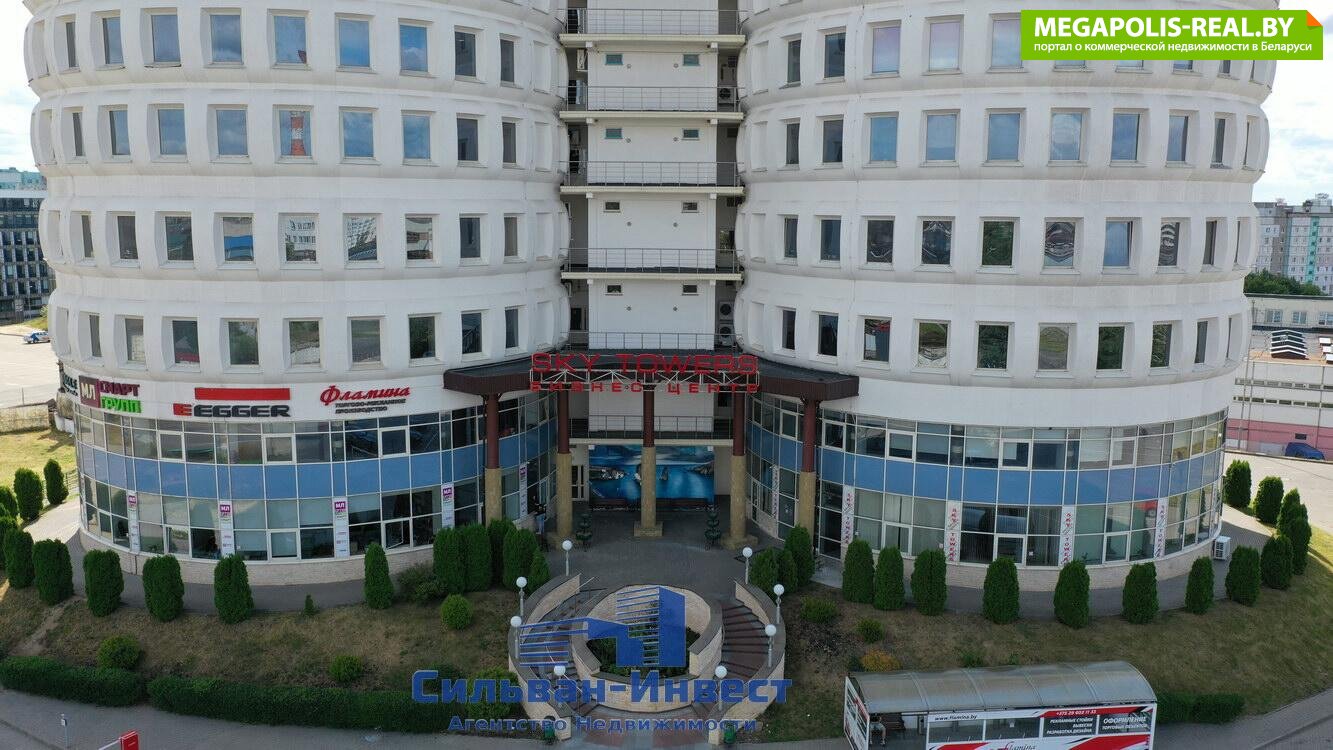 Современный 13-этажный бизнес-центр «Sky Towers» («Скай Тауэр») класса «В» располагает на первых этажах зоной Reception, кафе, а остальные этажи отданы под офисы со свободной планировкой. Площадь здания 21000м2.