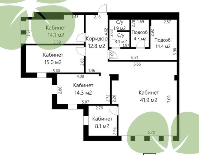 Планировка здания – коридорная система. Площадь офисных помещений варьируется от 40 до 200 квадратных метров. Занятость площадей приближается к максимальной, что свидетельствует о востребованности объекта. Освобождение офисных помещений происходит нечасто.