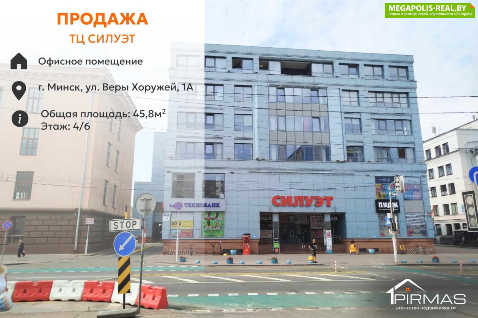 ► Бизнес-центр «Силуэт», построен в 2009 году► Материал стен — керамзитобетонные блоки► Перекрытия — железобетонные► Вход — отдельный, с правой стороны от ТЦ «Силуэт»► Есть 2 лифта► Прямой вход на этаж из паркинга — не выходя на улицу► Чёткое разделение потоков: 1–2 этажи — торговые, офисы — отдельно► Многоуровневый паркинг (почасовая и долговременная аренда мест)