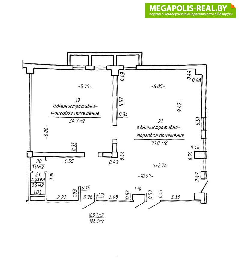 Тип объекта: Административно-торговое помещение общей площадью: 108,3 м2.