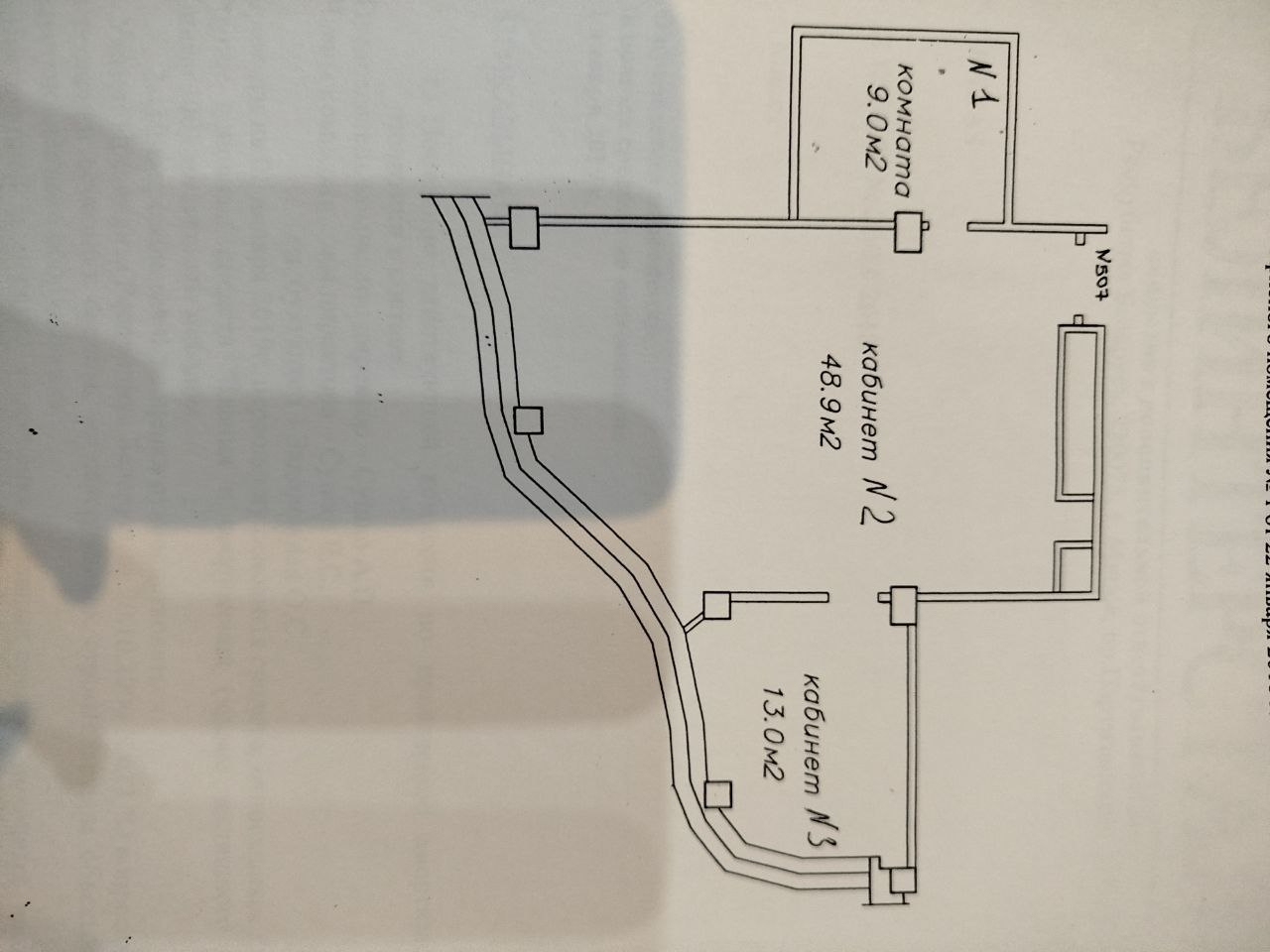 Готов к въезду: Никакого ремонта и закупки мебели. Три зоны: большой зал со стеклянными перегородками (49 м2), личный кабинет руководителя (13м2) и комната под кухню/переговорную/личный санузел (9 м2).