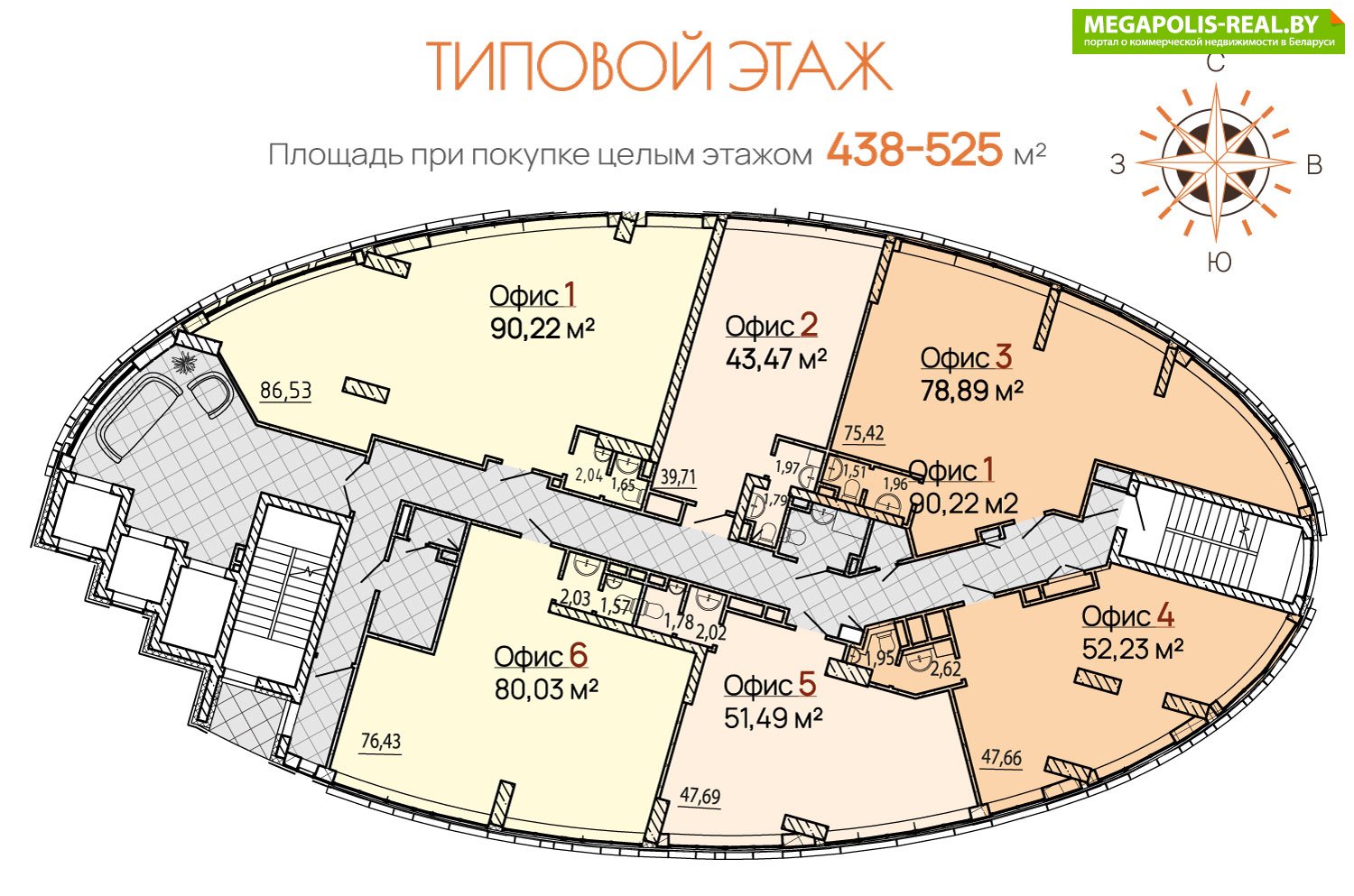 Все офисы с отдельными санузлами и мини-кухнями.