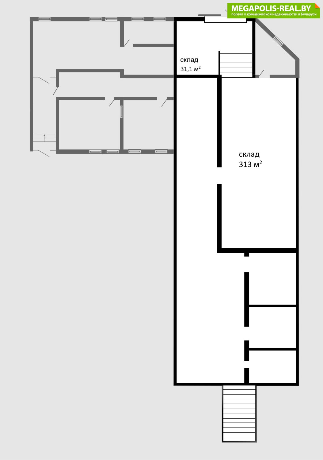 Площади от 300 до 700 кв.м. Офисные помещения от до 300 кв.м. (Возможность увеличения или уменьшение площадей в зависимости от потребности).
