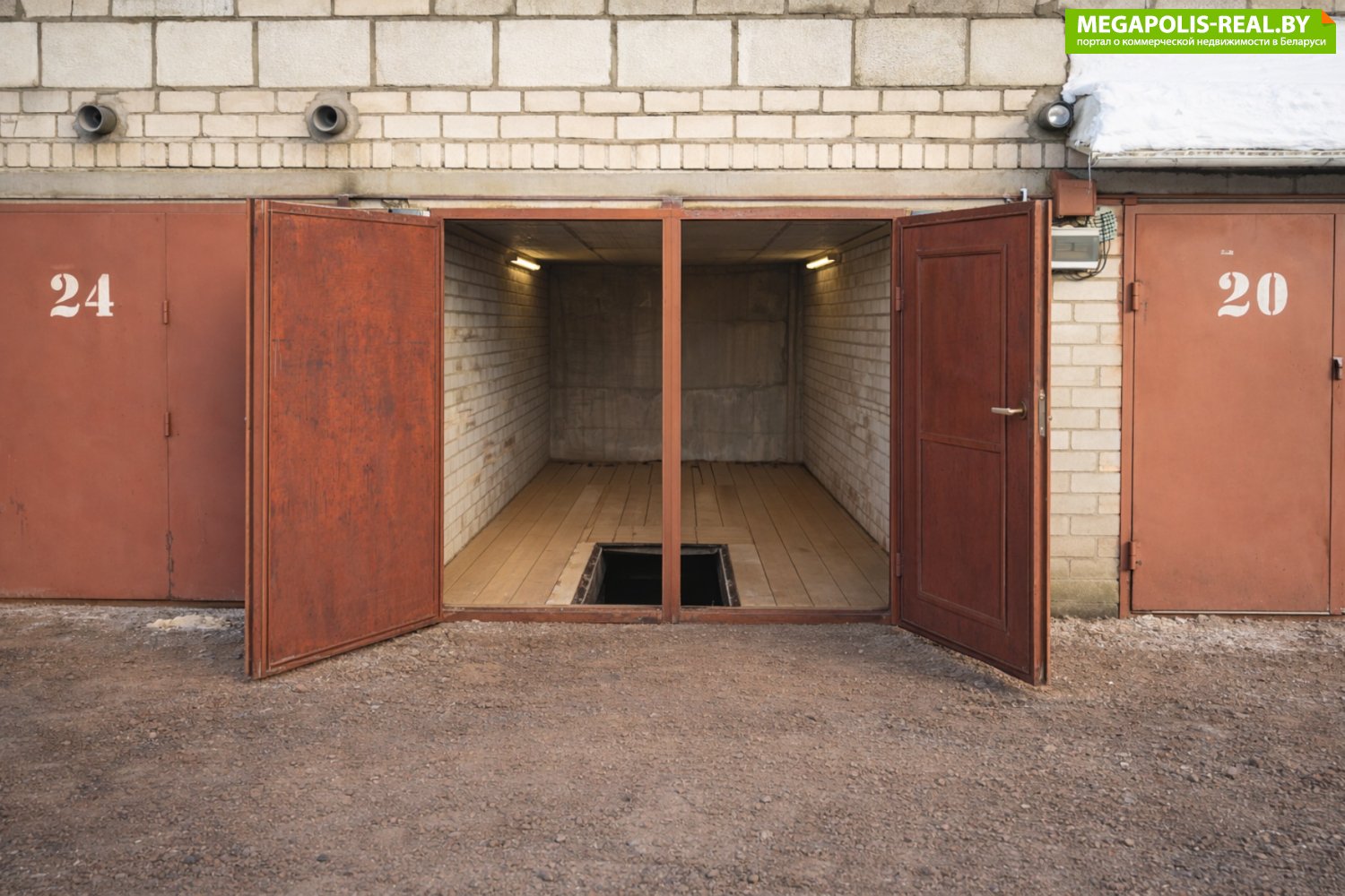 Фундамент – фундаментные блоки, стены – кирпич, перекрытия – железобетон. Полы – бетонная стяжка. Металлические ворота. Распределительный щит внутри помещения.