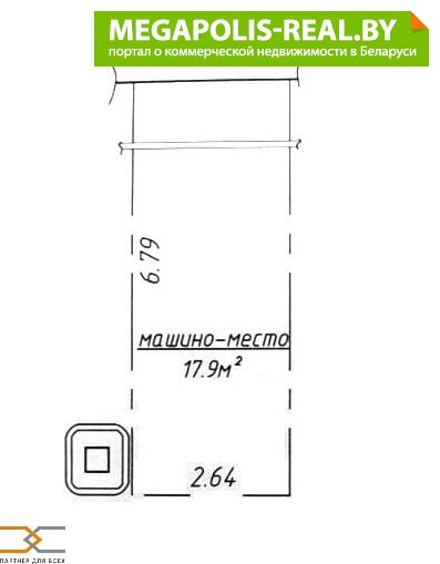 Площадь машиноместа составляет 17.9 кв.м.