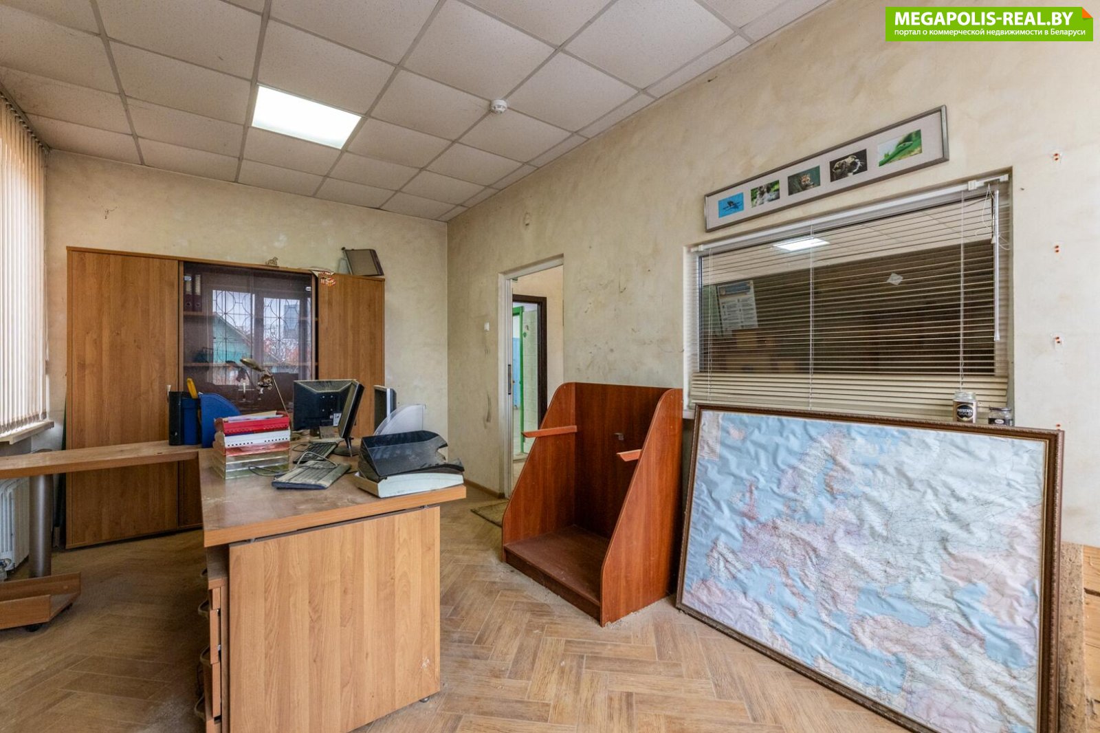 В цокольном этаже имеется просторное отапливаемое помещение под склад, а также котельная с твердотопливным котлом. Возможно подключение к центральным коммуникациям. Офисное помещение разделено на кабинеты, есть комната для приема пищи и санузел.
