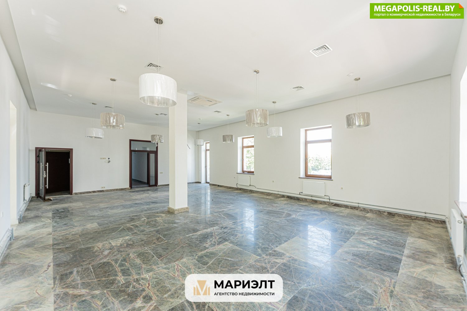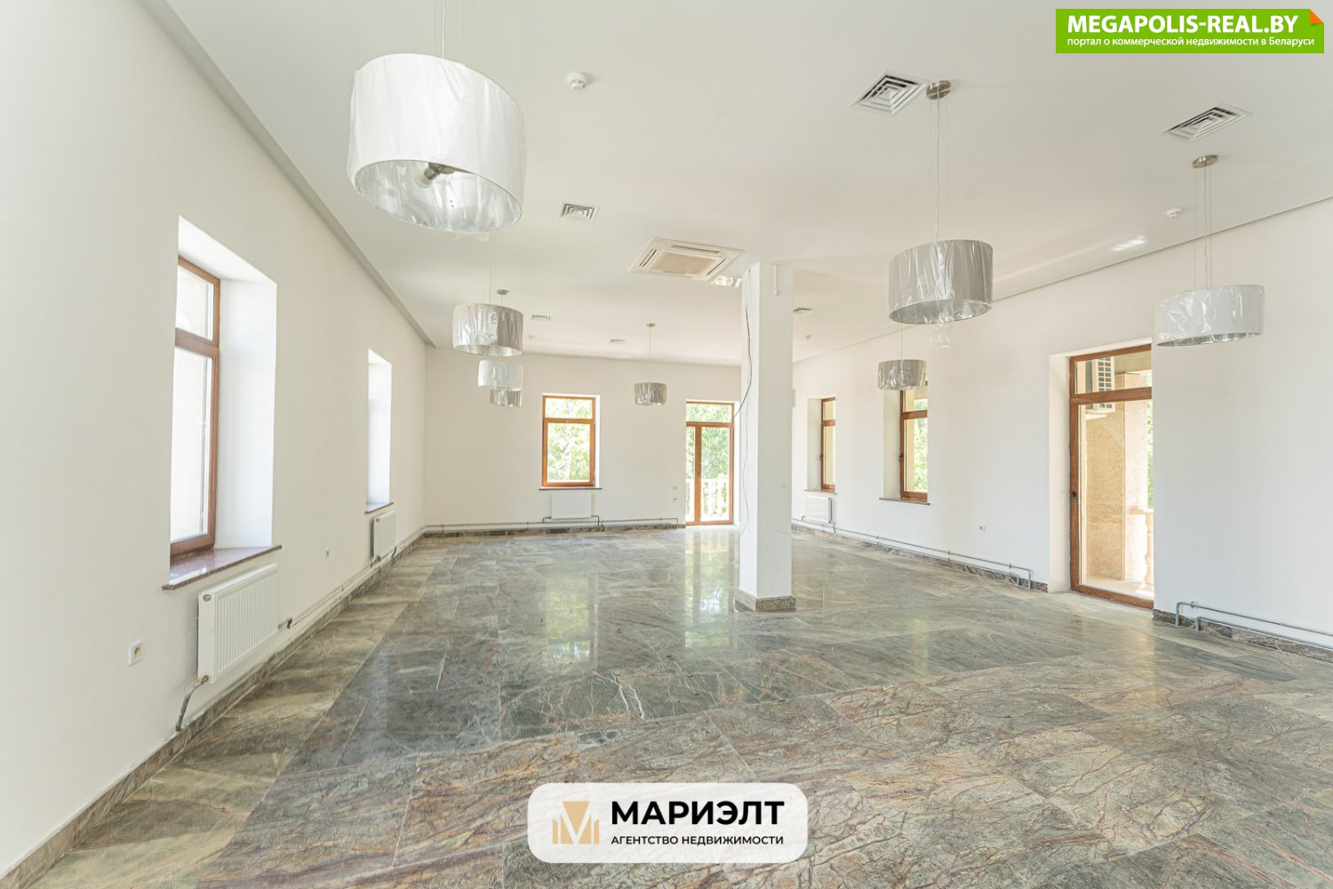 Зал кафе с баром 286 м2 с выходом на балкон, панорамным остеклением, санузлы, дополнительный зал на 90,3 м2