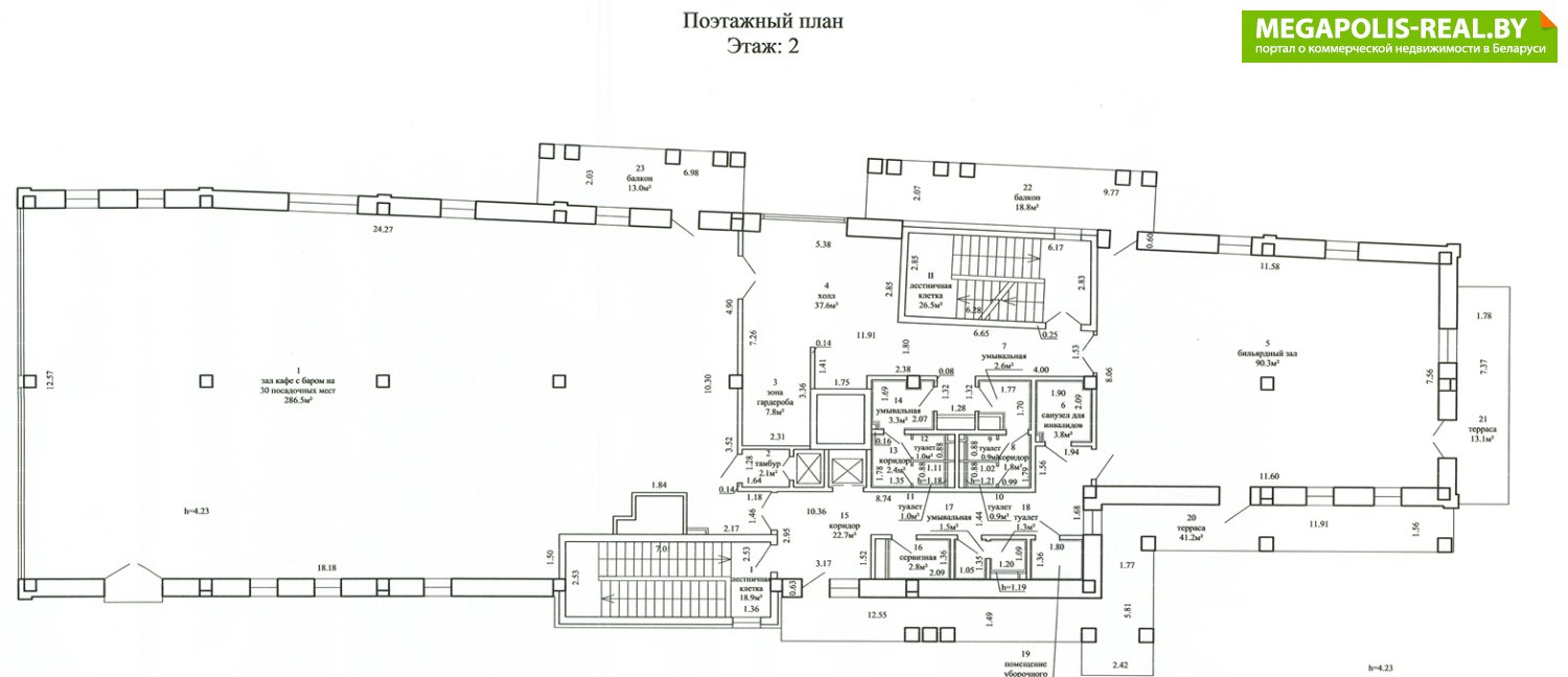 - Высота потолка: 4,23