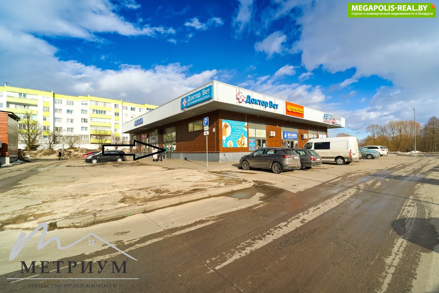 Просторная парковка.