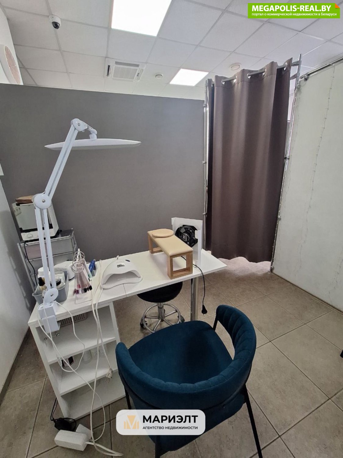 - Два огороженных помещения: один – маникюр (1 рабочее место) и педикюр (1 место). Второй зал – парикмахерских услуг, оборудован 3мя рабочими местами + парикмахерской мойкой.