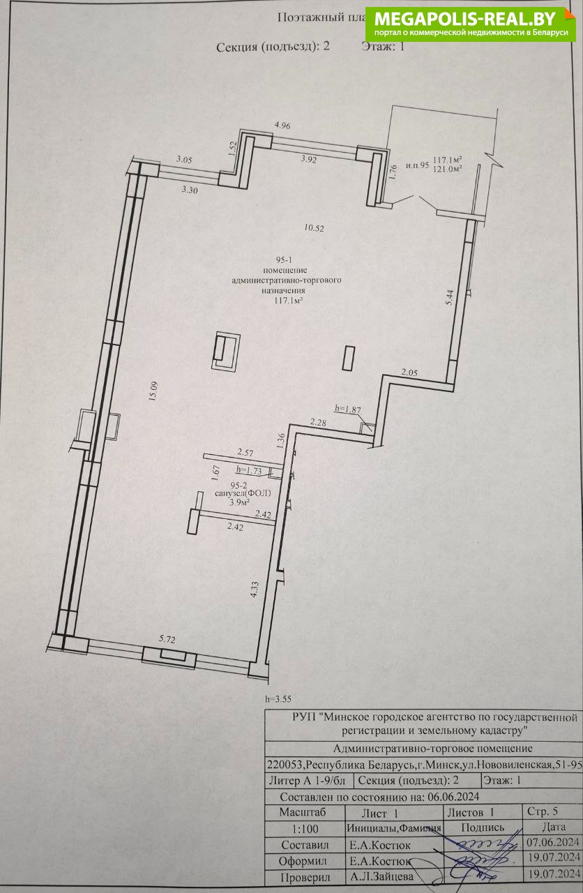 Назначение по техническому паспорту - административно-торговое общей площадью 121 м2; - собственный санузел.