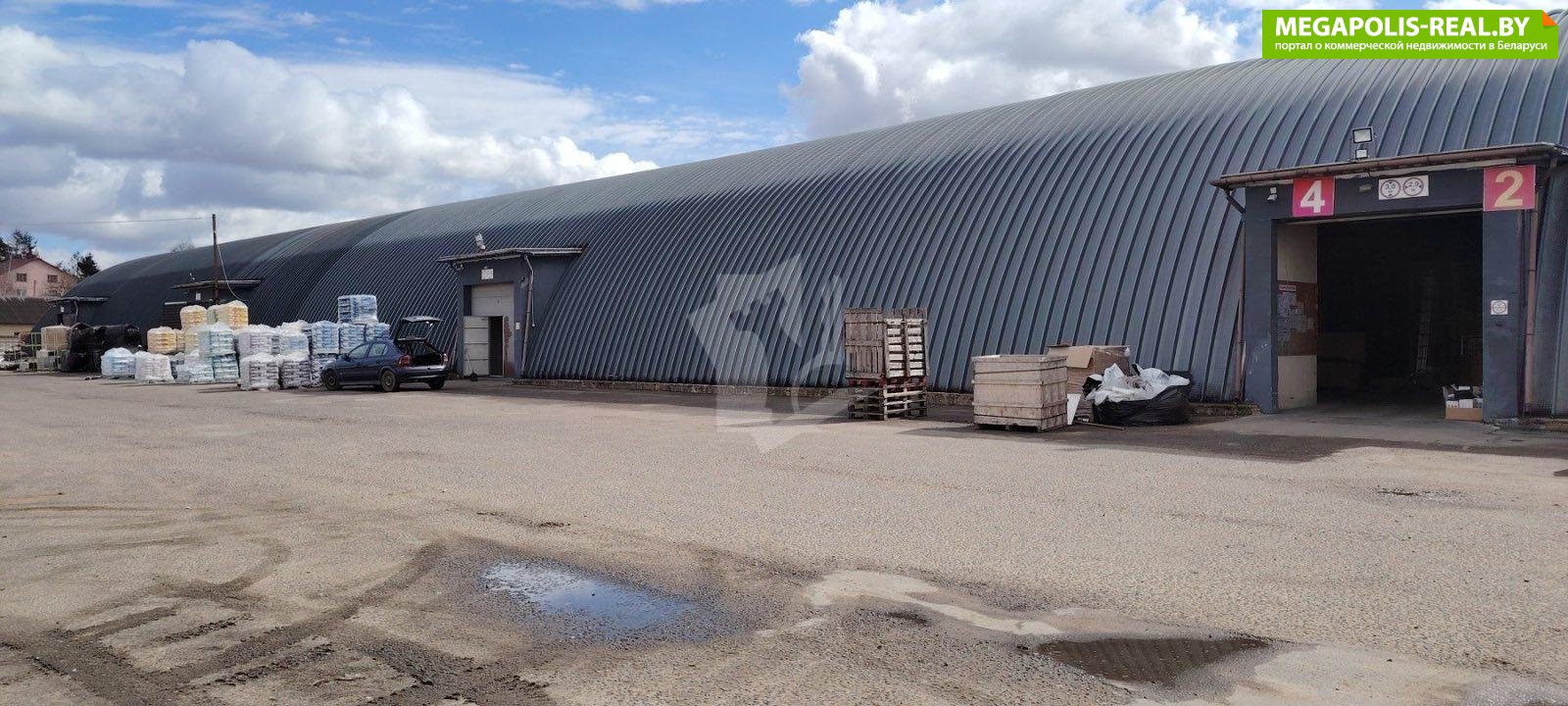 Общая площадь 700 кв , высота потолков 6 метров, двое секционных ворот, наливные полы большая асфальтированная площадка для разгрузочно-погрузочных работ и хранения, хорошие подъездные пути .