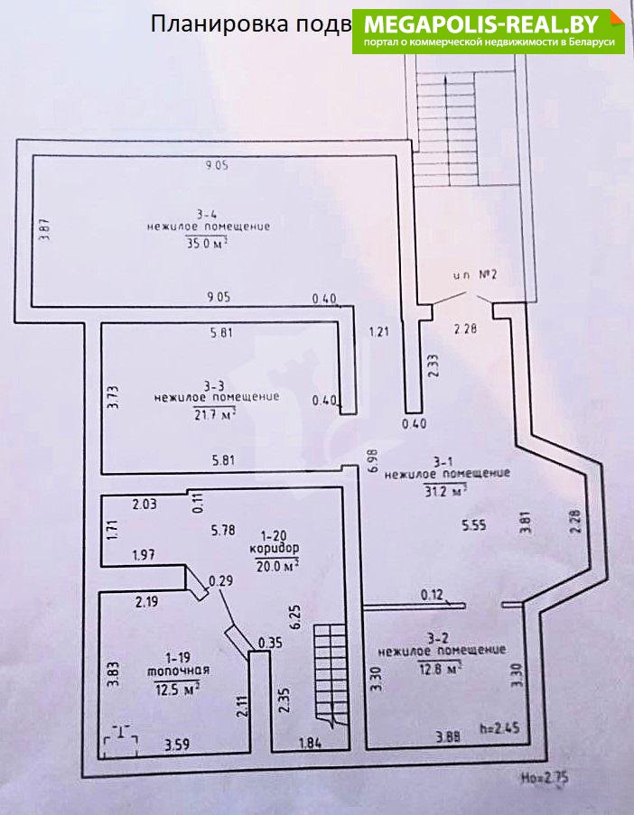 -1 этаж: 12,8 м2, 21,7 м2, 31,2 м2, 35,0 м2, (общая 100,7 м2) Склад имеет универсальный ремонт: пол— цементно-песчаная стяжка, стены оштукатурены, имеет отдельный вход с рампой.