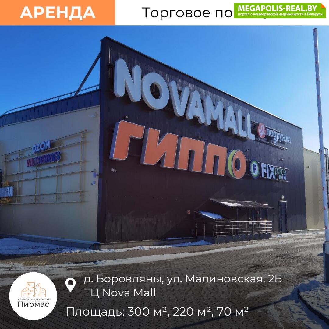 ✅ Добро пожаловать в Nova Mall – динамично развивающийся торговый центр в сердце Боровлян, который уже стал ключевой точкой притяжения покупателей! Сейчас у Вас есть возможность арендовать просторные коммерческие площади в этом востребованном месте. Адрес: Минский район, деревня Боровляны, ул. Малиновская, 2Б.