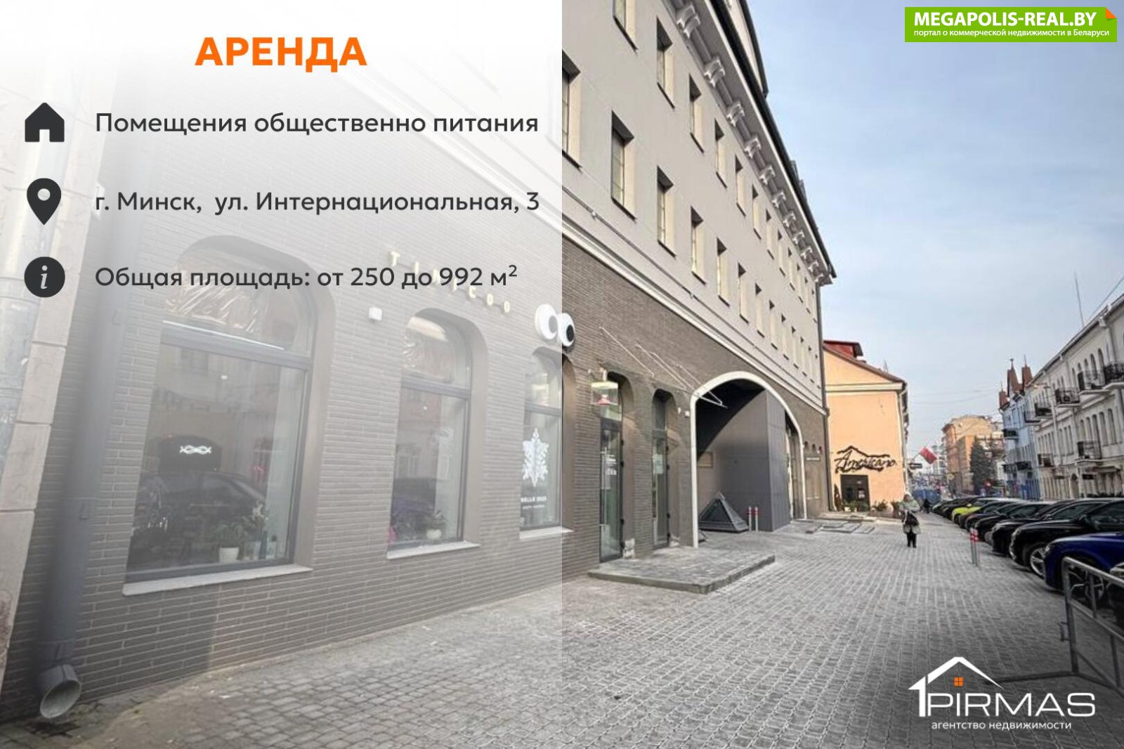 ✅Предлагаем Вам уникальную возможность арендовать просторное коммерческое помещение, идеально подходящее для организации бара, кафе или ресторана, в самом сердце Минска по адресу: улица Интернациональная, дом 3.