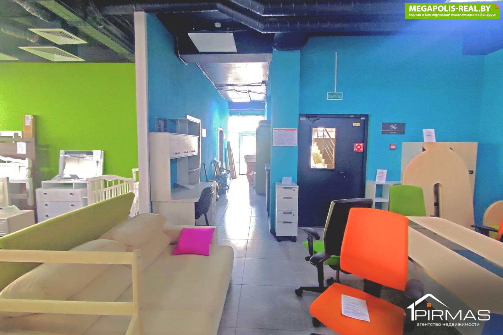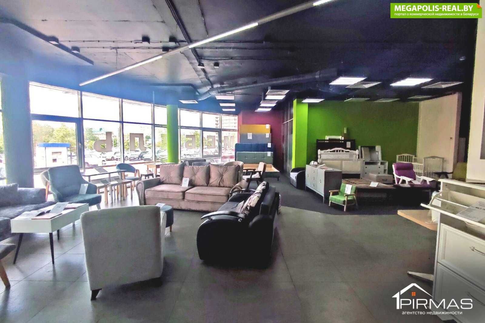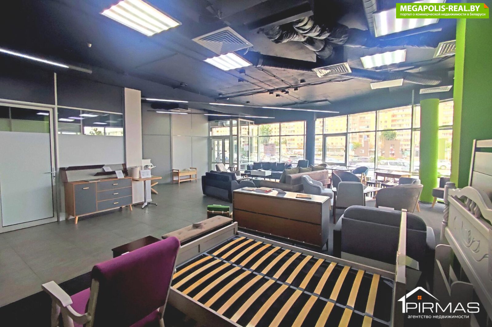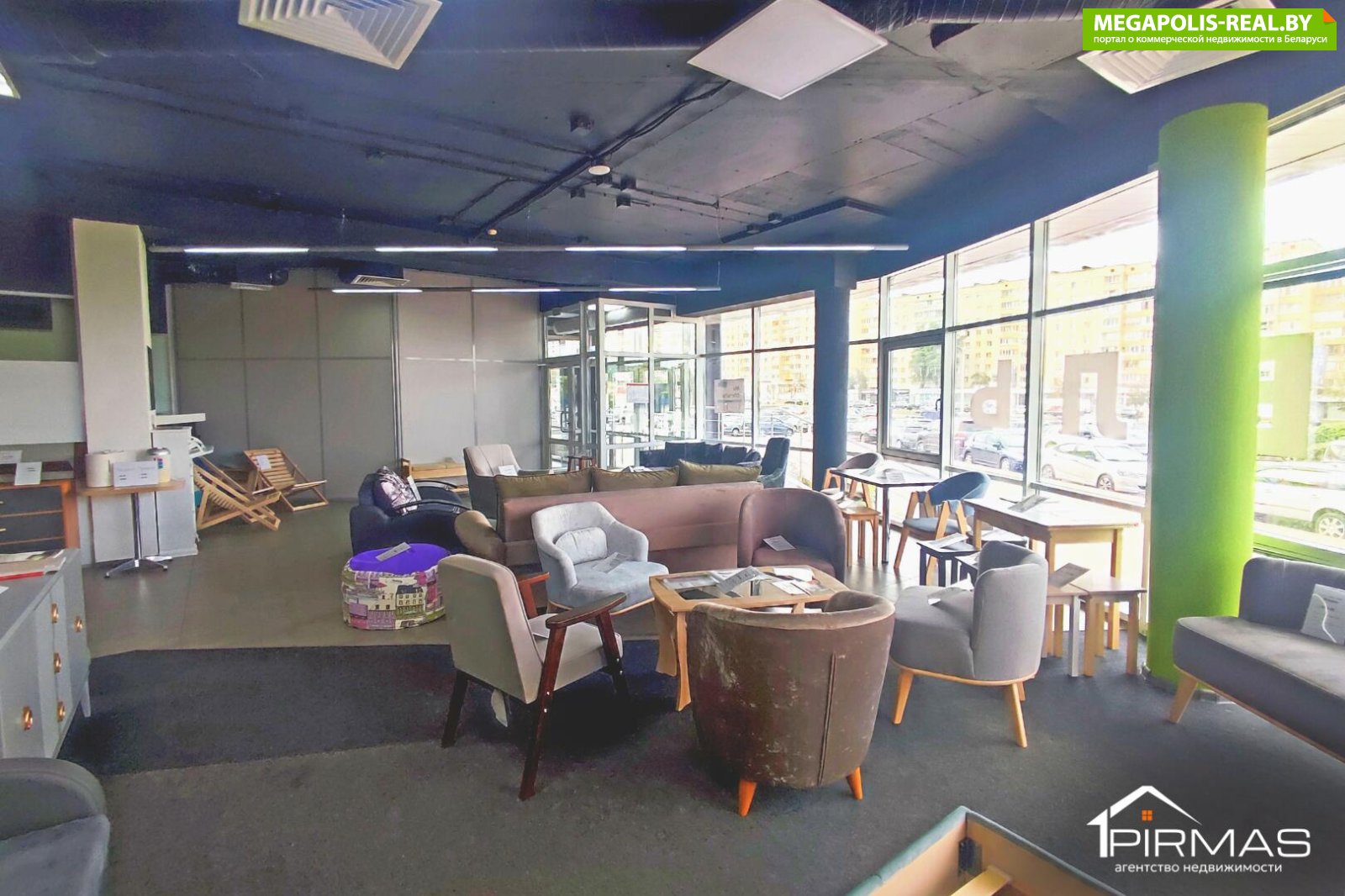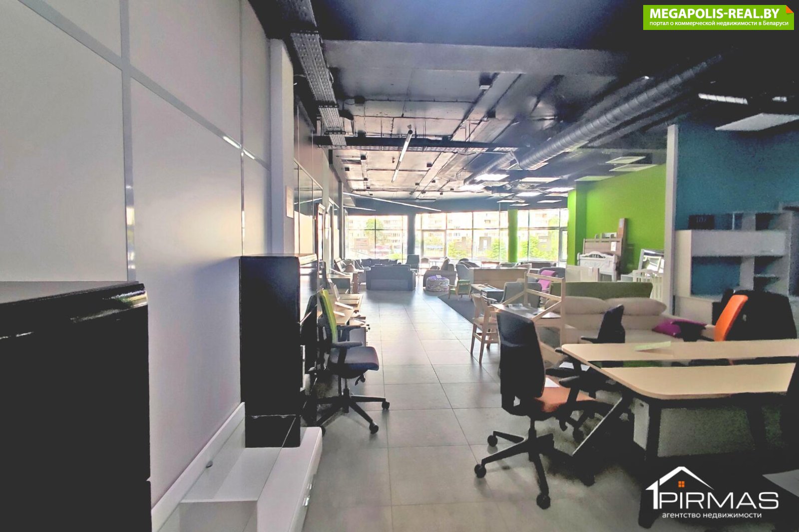 ► Освещение: естественное + панорамное остекление (витрины)