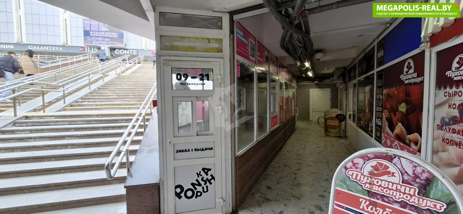 Торговое помещение 21,5 м2 в подземном переходе на ст.м. «Партизанская» на выходе к Универмагу «Беларусь». Расположение обеспечивает высокий пешеходный трафик и стабильность клиентов.