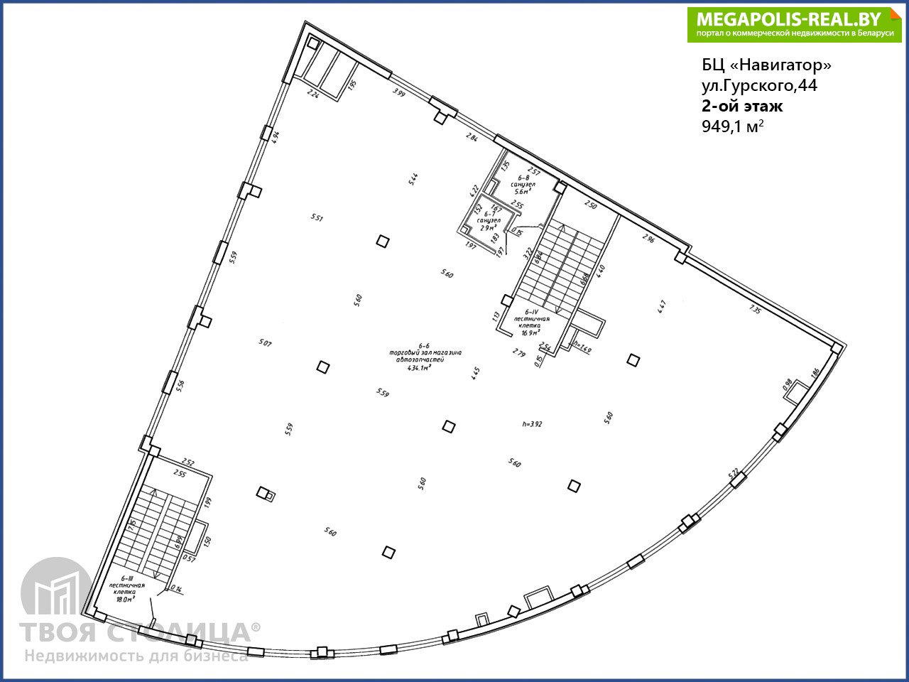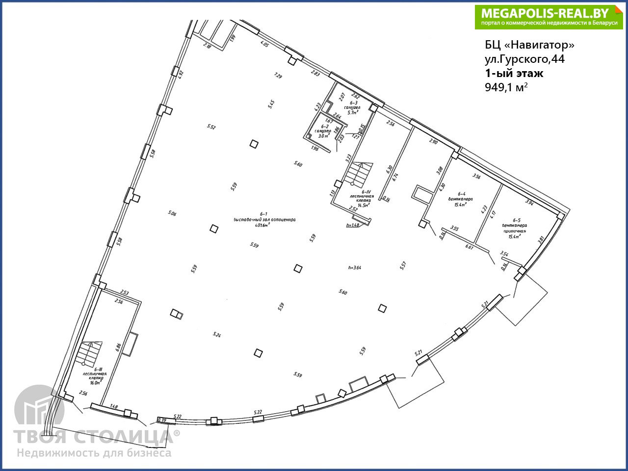 Уникальное предложение. Помещение под автоцентр и магазин автозапчастей, общей площадью 949,1 кв.м. Высота потолков h=4,6 метра. Рядом есть возможность аренды СТО с автомойкой общей площадью 992 кв.м.Предлагаемые помещения располагаются в бизнес-центре "Навигатор", на пересечении улиц Гурского и Брыля.БЦ введён в эксплуатацию в сентябре 2019 г.Предоставляются арендные каникулы.На прилегающей территории организована плоскостная парковка на 19 машиномест.Арендатор не оплачивает услуги агентства.