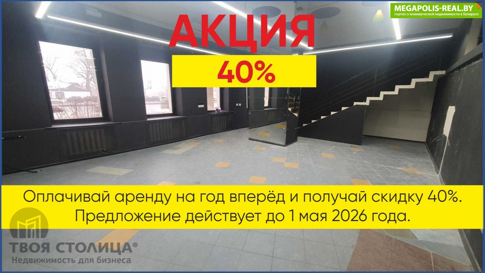Акция!!! Оплачивай аренду на год вперед и получай скидку 40%. Предложение действительно до 01.05.2026г!Торговое помещение в оживленном месте с высокой проходимостью площадью 121 кв.м. на первом этаже жилого дома с двумя отдельными входами по адресу ул. Маяковского, 22/1.Помещение включает в себя торговый зал общей площадью 59,9 кв.м., комната приема/хранения товара, подсобное помещение, кабинет, сан. узел. Функционирует электричество, центральное отопление, вентиляция, пожарная сигнализация, высокоскоростной интернет.В непосредственной близости находится отделение банка, аптеки, точки общественно питания, а также торгового назначения и сферы услуг. В шаговой доступности остановки общественного транспорта.Арендатор не оплачивает услуги агентства