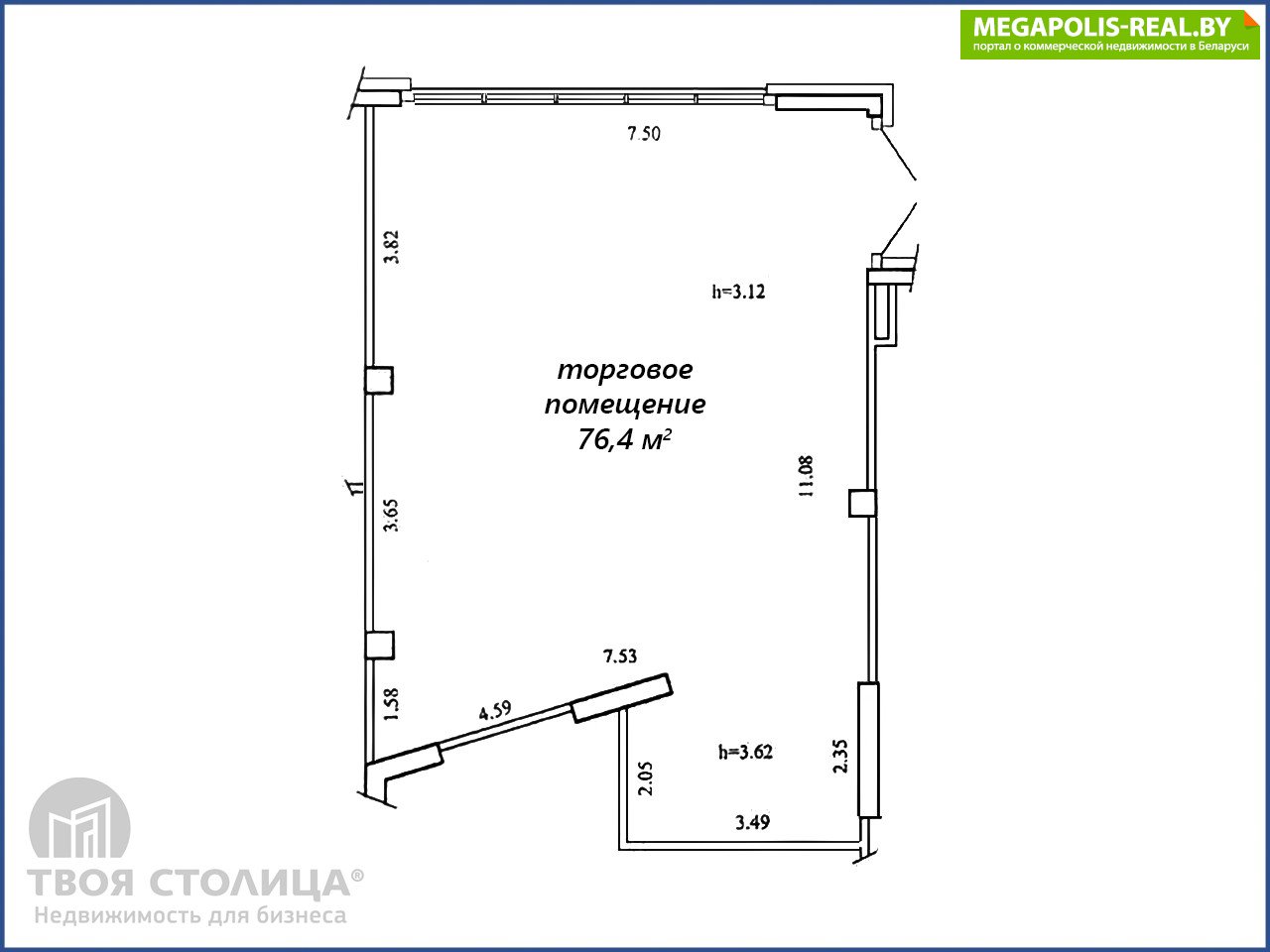 Коммерческое помещение на первом этаже жилого дома "Аруба" в квартале «Тропические острова » площадью 76.4 кв.м. комплекса "Minsk World". Квартал расположен в восточной части комплекса. Отличный ремонт, собственный сан/узел, панорамное остекление. Коммуникации:Центрально отопление.Вытяжная вентиляция.Электричество с разводкой.Холодная/горячая вода с разводкой.Канализация.Интернет.Торговое помещение с витражным остеклением. Объект находится в многоквартирной жилой новостройке 2023г постройки. Все дома квартала "Тропические острова" имеют высоту 25 этажей. В данном жилом доме и домах по соседству выкуплены все квартиры. Идет активное заполнение торговых помещений - сетевые магазины, кафе, сфера услуг. Развивается инфраструктура, в скором времени открытие станции метро Аэродромная.Арендатор не оплачивает услуги агентства.