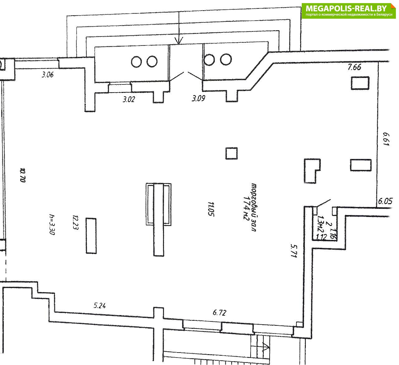 - Высота потолка: 3,30