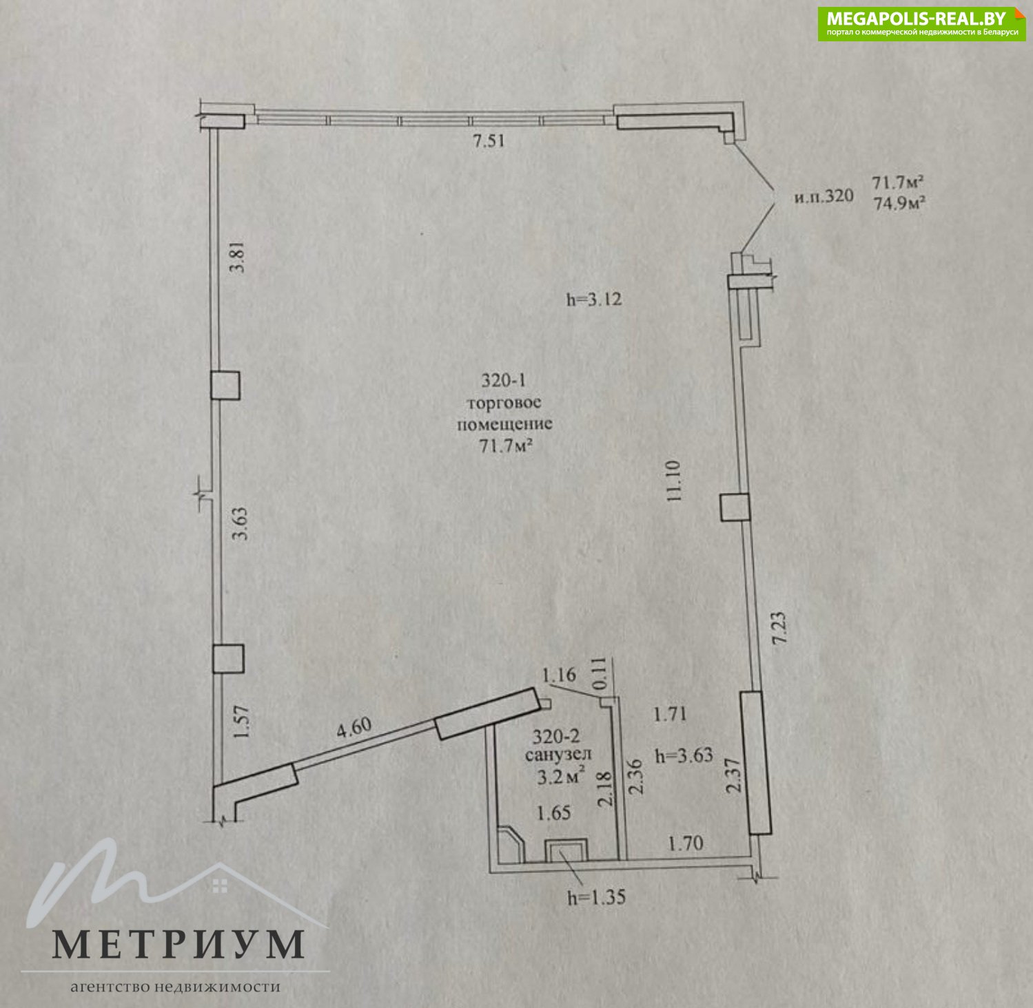 - Высота потолка: 3,12