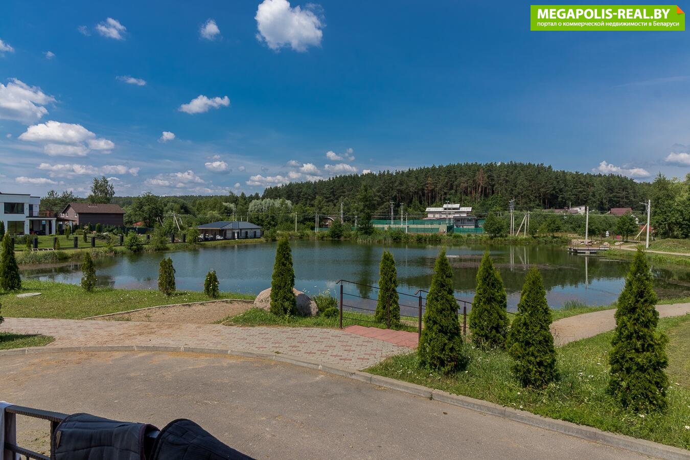 Участок огорожен, на территории расположено искусственное озеро с беседками по периметру, есть шашлычная.