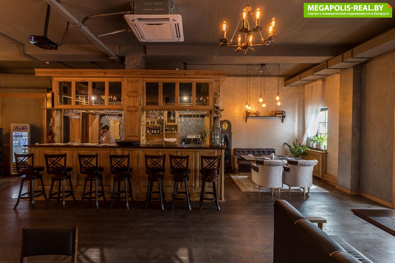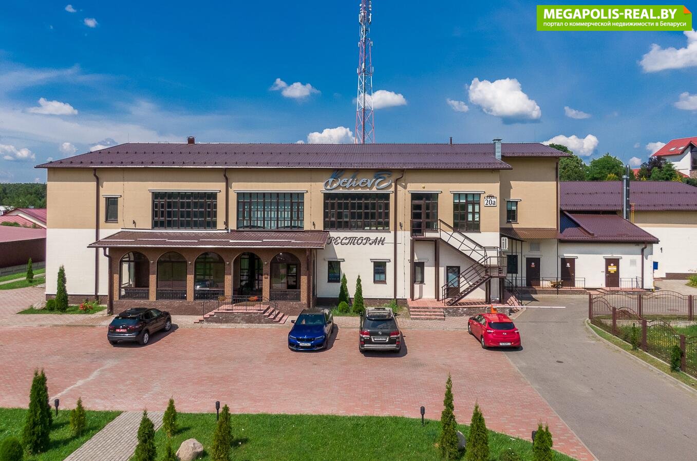 На первом этаже находится ресторан с оборудованной кухней с открытой террасой. В помещении выполнен современный ремонт в стиле ретро.
