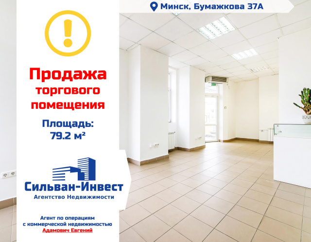 Продажа административно - торговых помещений - Минск, ул. Бумажкова, 37/АСтатус объекта - торговое помещениеАдрес: Минск, Бумажкова, 37АПлощадь: 79,2 м2