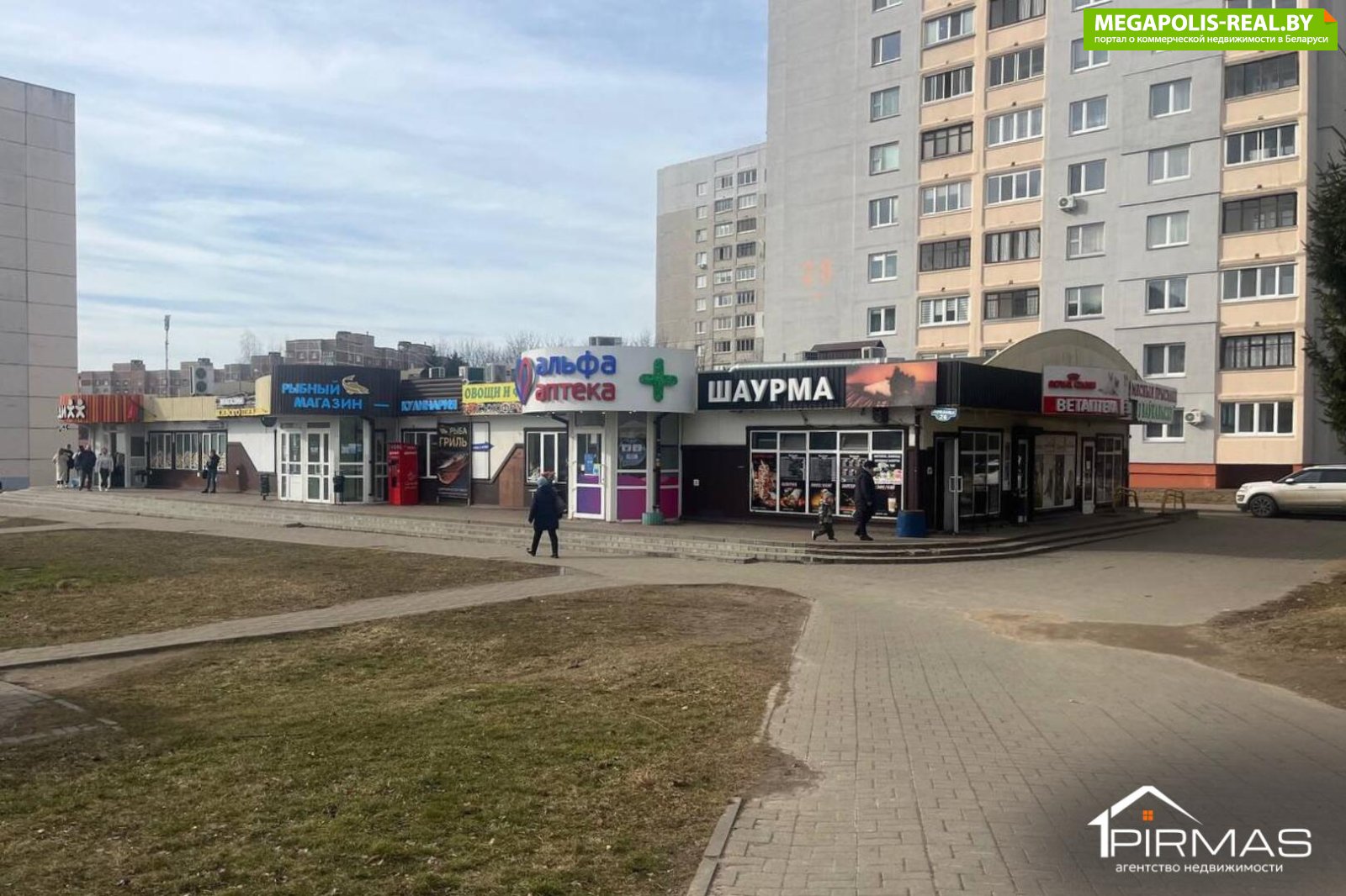 o Соседи: магазин мясных деликатесов из Волковыска, Зообазар, аптека «Альфа» — бизнесы, ориентированные на локального покупателя