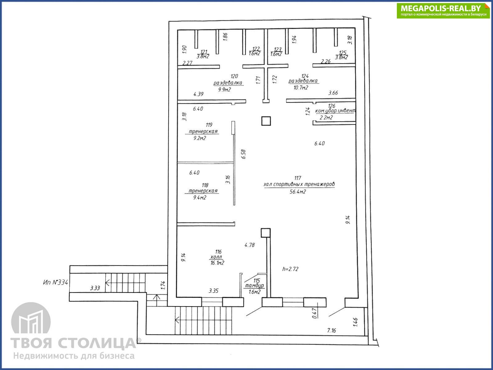 Помещение физкультурно- оздоровительного и спортивного назначения с отдельным входом в жилом доме по адресу ул. Каховская, 17.Общая площадь 126,3 кв.м, основной зал (56,4 кв.м.), три вспомогательных помещения, две раздевалки со шкафчиками, свои санузлы и душевыми, холл с ресепшеном. Доступ 24/7.Выполнен качественный (дизайнерский) ремонт:Пол: плитка, специализированное покрытие для занятия спортом;Стены: плитка, зеркала;Потолок: смешанная облицовка с зеркальными элементами (значительно увеличивающих пространственное восприятие);Душевые/санузлы: качественная импортная сантехника и посуда.Инженерия и коммуникации:Централизованное отопление;Система приточно- вытяжной вентиляции с системой рекуперации (Komfovent Kompakt)КондиционированиеВидеонаблюдениеПожарная сигнализацияВысокоскоростной интернетОбъект располагается в ЖК "Дипломат", в непосредственной близости находится СШ №37, "Гиппо", аптеки, точки общественно питания, а также объекты торгового назначения и сферы услуг. В шаговой доступности остановки общественного транспорта.Арендатор не оплачивает услуги агентства.